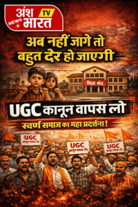 सरकार द्वारा लाए गए यूजीसी (UGC) कानून को लेकर स्वर्ण समाज में गहरी चिंता देखी जा रही है। इसी कड़ी में स्वर्ण समाज के लोगों ने एकजुट होकर इस कानून के खिलाफ विरोध प्रदर्शन करने की अपील की है। समाज के वरिष्ठजनों और जागरूक नागरिकों का कहना है कि यदि आज इस कानून के खिलाफ आवाज़ नहीं उठाई गई, तो आने वाले समय में हमारे बच्चों का भविष्य अंधकारमय हो सकता है।