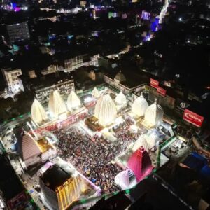देवघर (झारखंड): महाशिवरात्रि के पावन अवसर पर विश्व प्रसिद्ध बाबा बैद्यनाथ धाम मंदिर में श्रद्धालुओं की अभूतपूर्व भीड़ उमड़ पड़ी। देर रात से ही मंदिर परिसर और आसपास की सड़कों पर भक्तों की लंबी कतारें देखने को मिलीं। पूरा देवघर शहर रोशनी से जगमगा उठा और ‘हर-हर महादेव’ के जयकारों से वातावरण भक्तिमय हो गया।