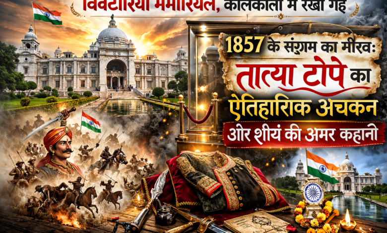 कोलकाता। 1857 के प्रथम स्वतंत्रता संग्राम के महानायक तांत्या टोपे से जुड़ी ऐतिहासिक अचकन इन दिनों विक्टोरिया मेमोरियल में प्रदर्शित की गई है। रेशम एवं मखमल के कपड़े से निर्मित यह अचकन उस दौर की शौर्यगाथा और संघर्ष की जीवंत प्रतीक मानी जा रही है।